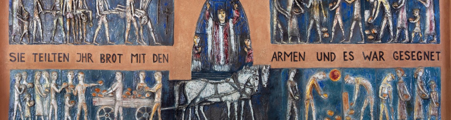 Drucken mit Acrylfarbe für Kinder ab 6 Jahren im Zeichensaal mit Katja Finck und Isabell Jung - Vortrag von Dr. Thomas Krämer zum Brotweiherelief im Alten Rathaus1666 wurde Herxheim von einer heftigen Pestwelle ergriffen. Viele Menschen starben, es kam zur Hungersnot. Die Nachbardörfer halfen: Regelmäßig wurde Brot für die Kranken an der Gemarkungsgrenze im Finsterfeld abgelegt. Aus Dankbarkeit legten die Herxheimer nach dem Ende der Epidemie das sogenannte Brotweihegelübde ab, das bis zum heutigen Tag eingehalten wird.