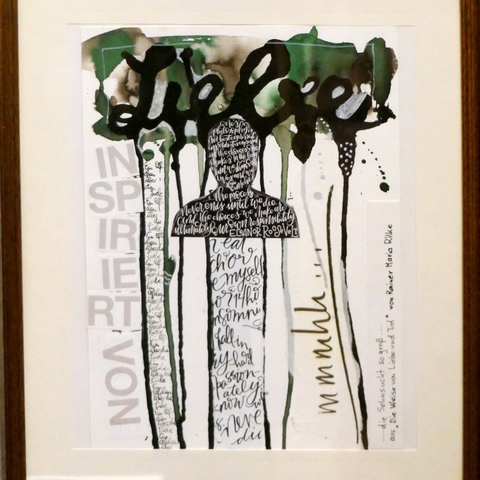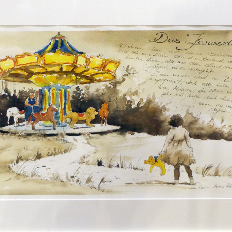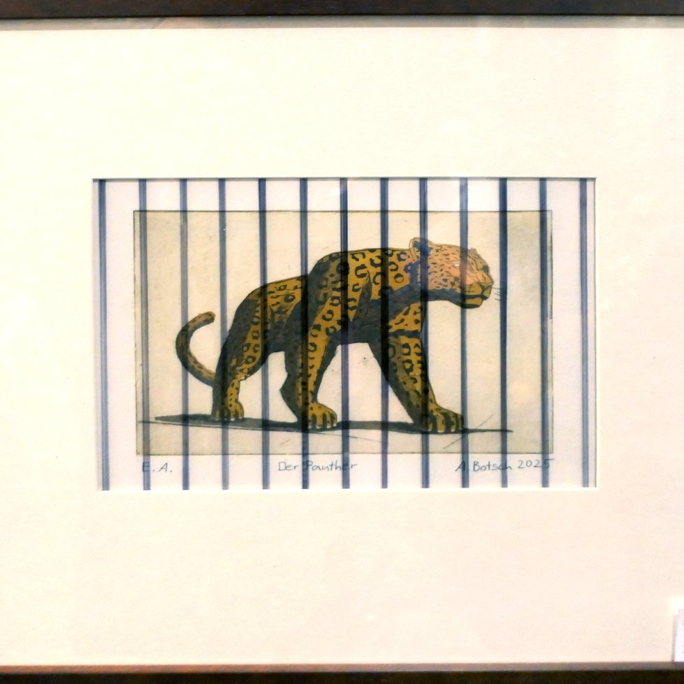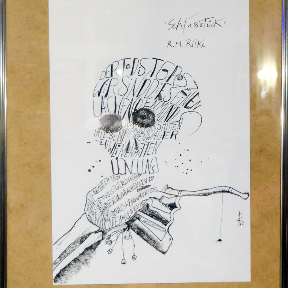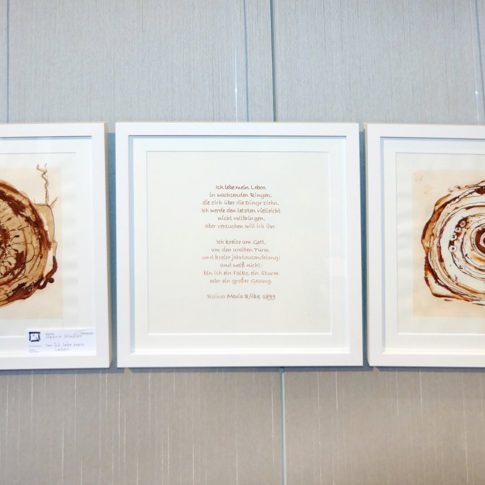 Zudem waren Zeichnungen, Gemälde und Skulpturen zu sehen, die sich insbesondere mit den berühmten Dinggedichten beschäftigten. So entstanden Arbeiten zu Gedichten wie „Der Panther“, „Das Karussell“, „Archaischer Torso Apollos“, „Die Gazelle“ und weiteren Texten. Die ausgestellten Werke im Saal der Villa Wieser bildeten zugleich den atmosphärischen Rahmen für die Lesungen.